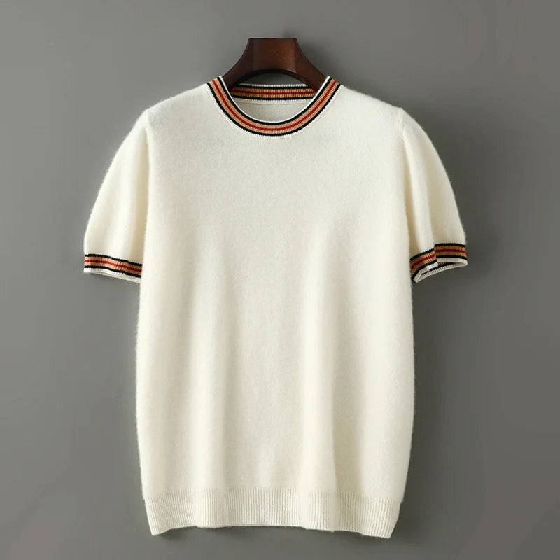 This Australian Merino wool masterpiece elevates casual luxury with its signature striped collar and cuffs that whisper understated confidence. The relaxed silhouette flows like second skin while the premium wool regulates temperature perfectly. One sweater that bridges seasons and styles perfectly.
